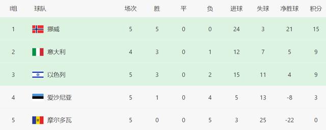 作为世界杯四冠王,意大利队这一次世预赛又遇到了麻烦,同组的挪威队势不可挡,已经豪取开局5连胜的战绩,还有21个净胜球优势,这让意大利队怎么追赶呢?